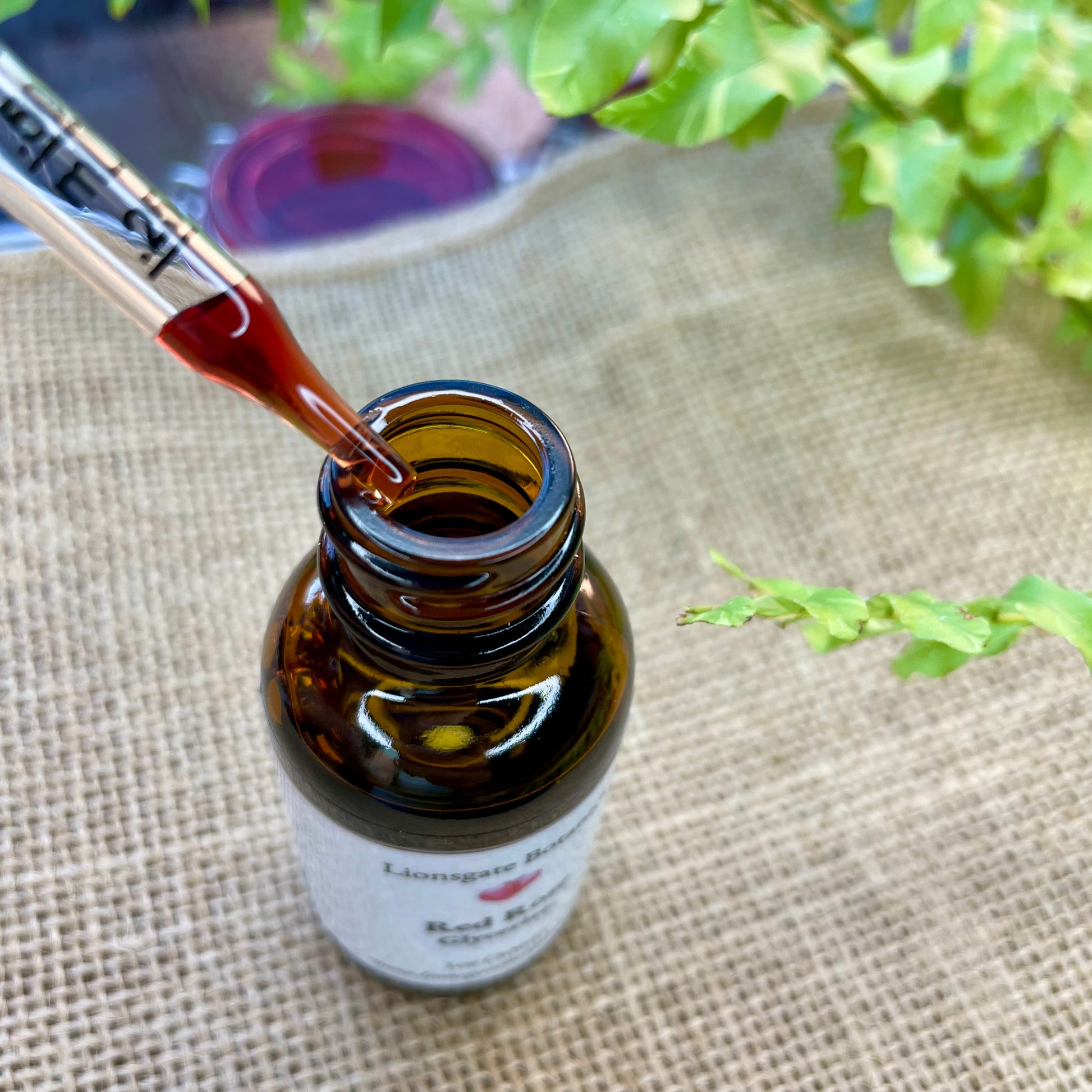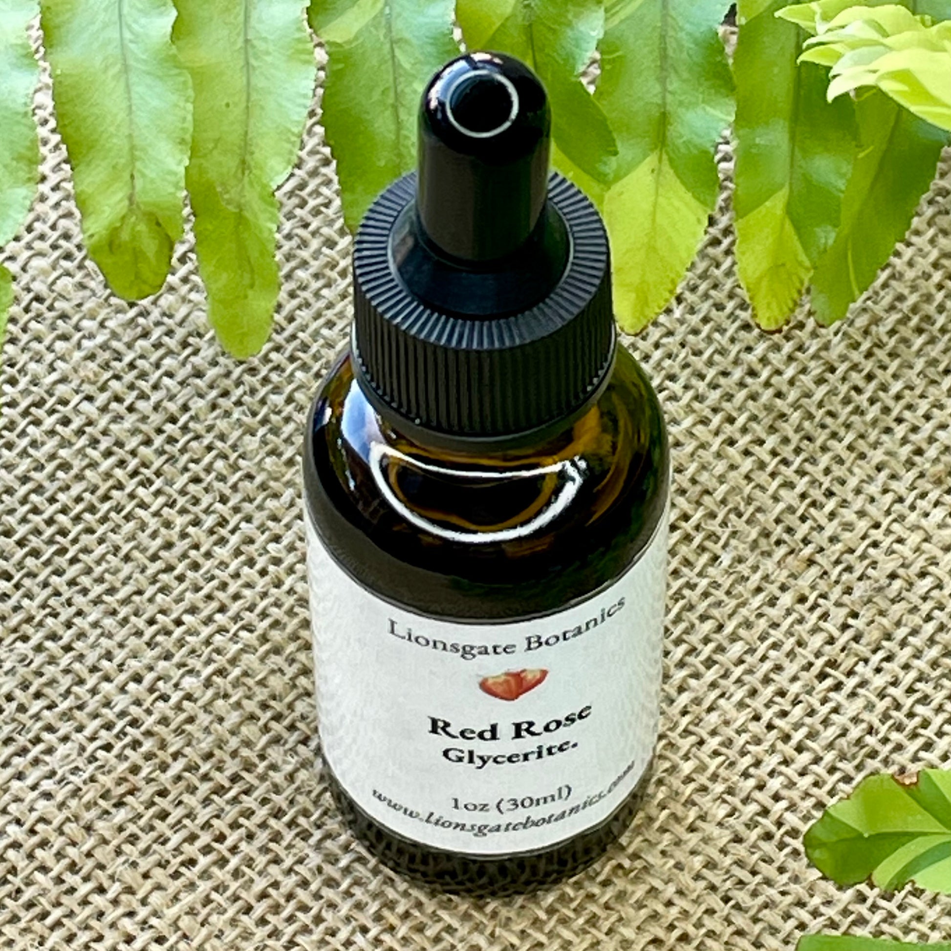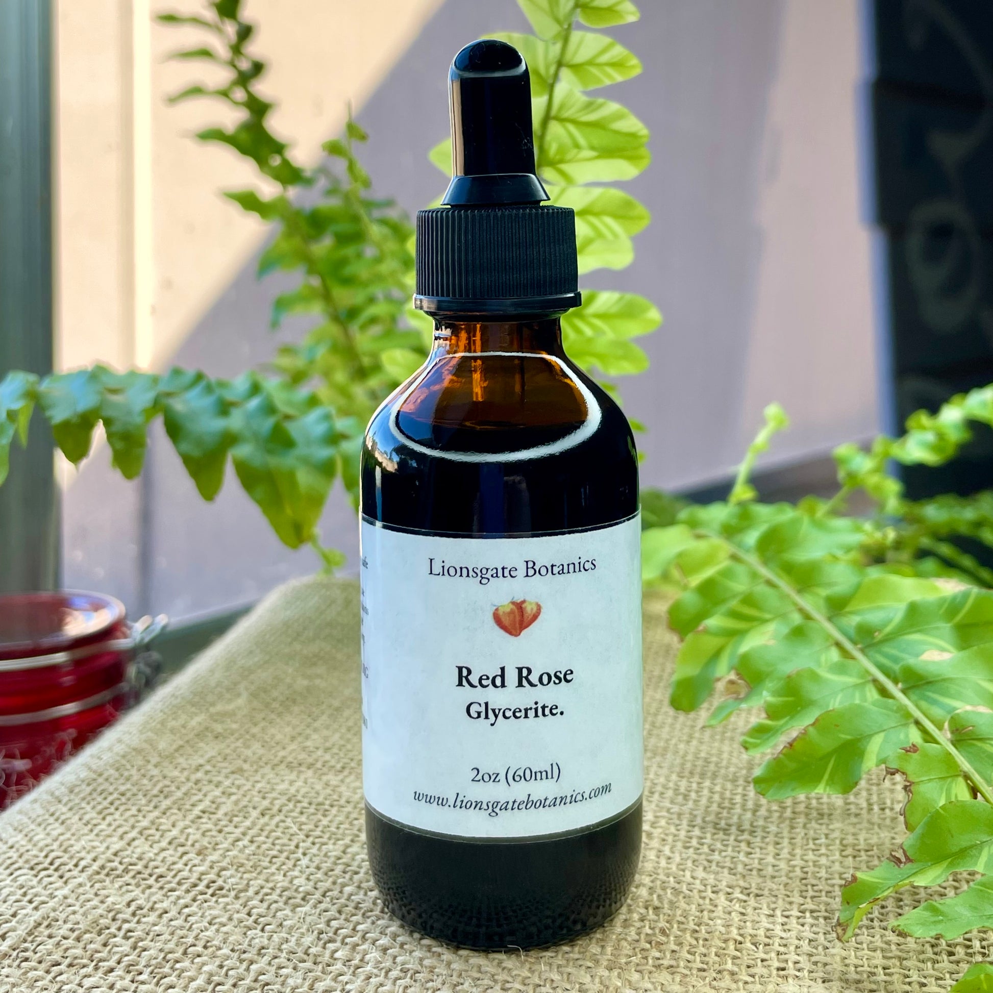 Our Red Rose Glycerite is a beneficial health tonic that supports your overall health. Rose is known for its heart-supportive properties, for being a strong uterine tonic that can help to heal cysts & infections, and for bringing on stubborn, delayed menstrual cycles. Rose was used in ancestral times for reducing nerve pain, as an antispasmodic for reducing asthma & cough, & for inducing appetite & stimulating the liver. It works as a great overall health tonic, especially in alteration with our Blessed Berry Leaf Glycerite (wild strawberry leaf)!