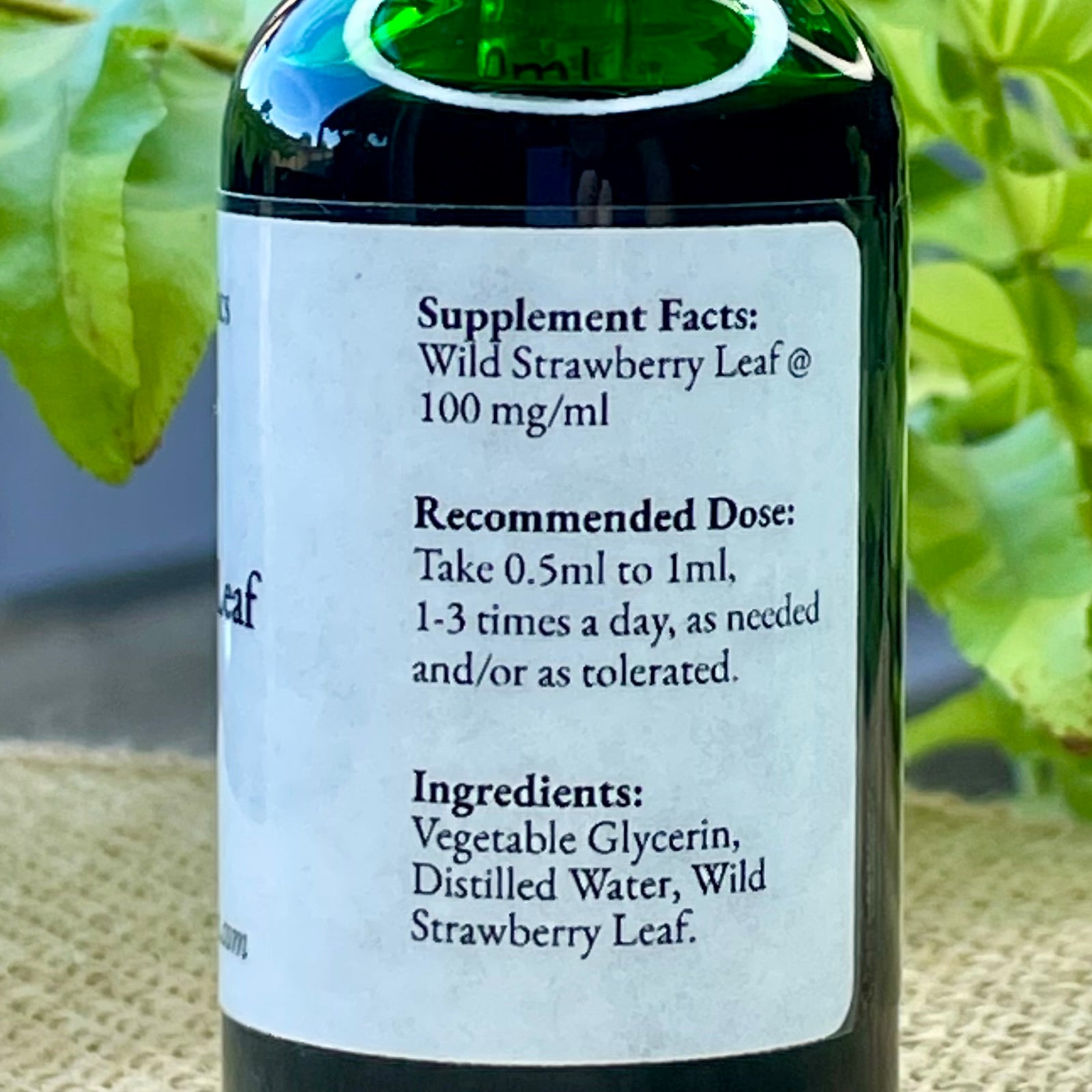 Ingredients: Vegetable Glycerin (Food Grade, Kosher Certified), Distilled Water, Organic Wild Strawberry Leaf.